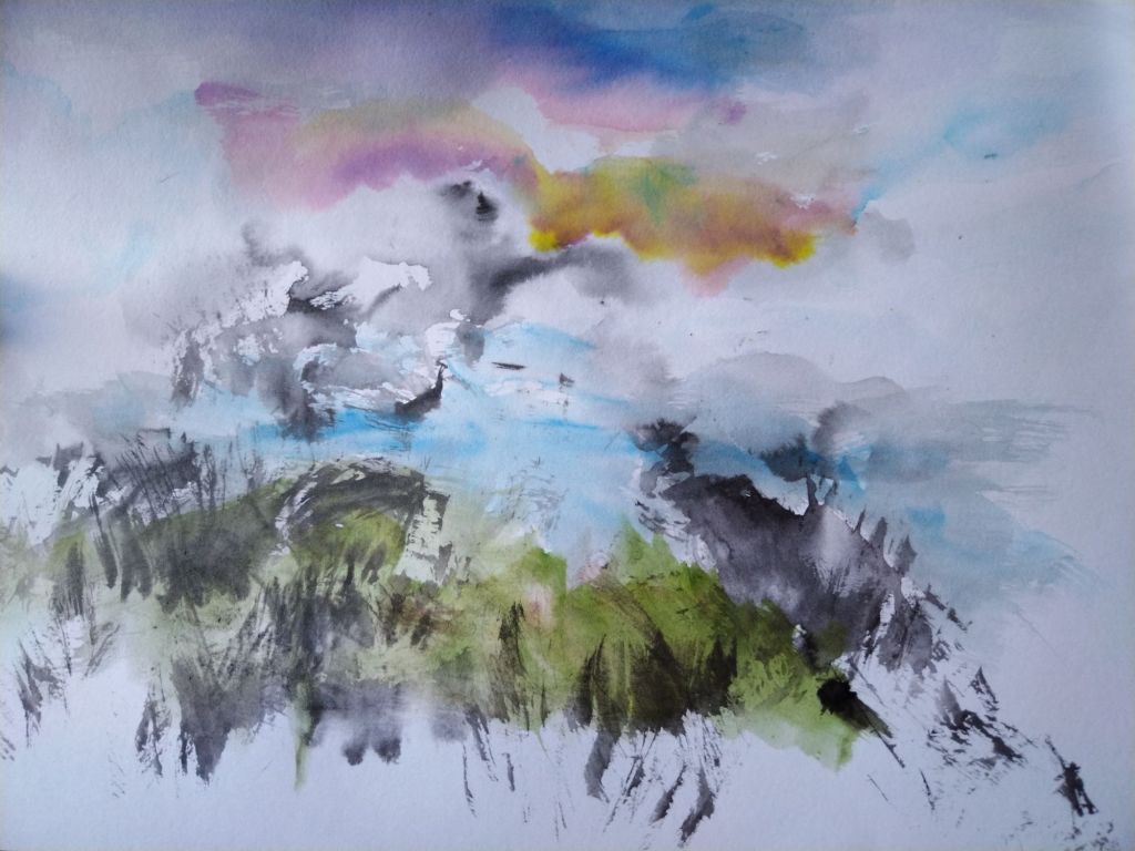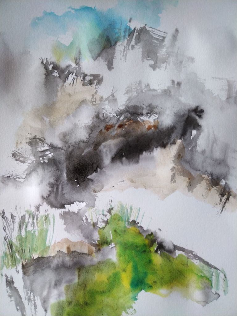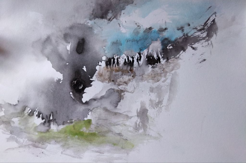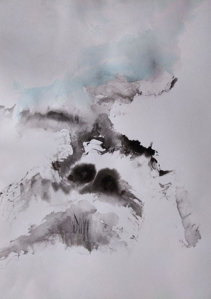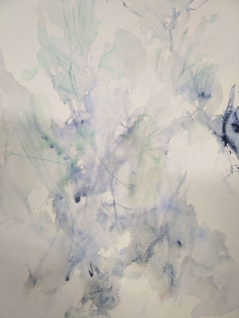 Mi trabajo de hoy: tinta y acuarela para ejercicios de abstracción y dejar trabajar la mente libremente.