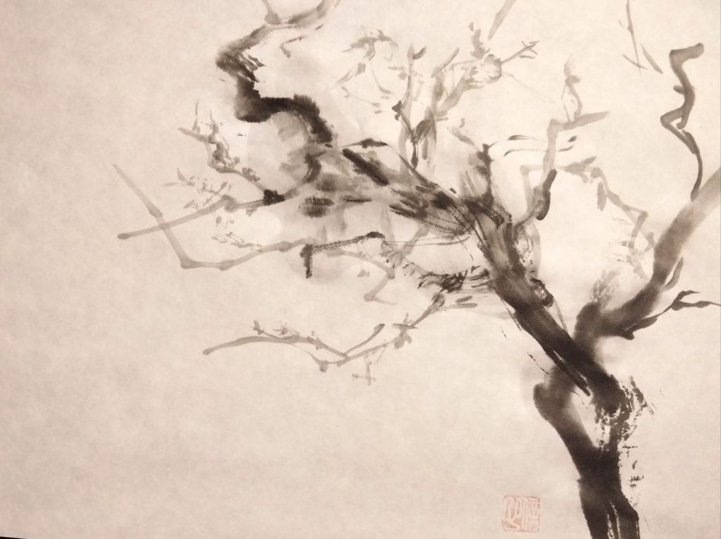 Tenía muchas ganas de pintar y retomar el sumi-e tradicional. No hay nada como centrarte, calmar tu mente y corazón mientras que preparas la tinta y pintar cuidando los vacíos y que el pincel vuele con tu mente.