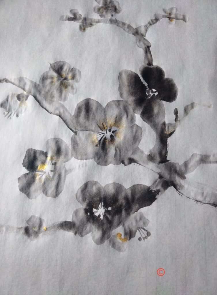 Tenía muchas ganas de pintar y retomar el sumi-e tradicional. No hay nada como centrarte, calmar tu mente y corazón mientras que preparas la tinta y pintar cuidando los vacíos y que el pincel vuele con tu mente.