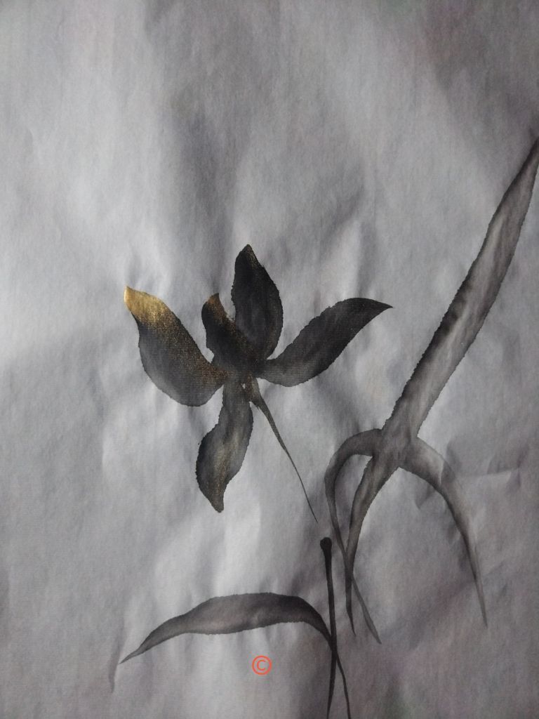 Os muestro mis últimas creaciones realizadas con sumi y tinta dorada.