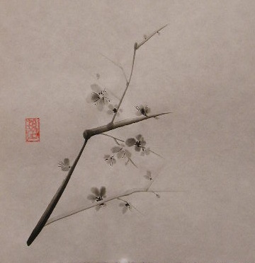 El ciruelo en flor es uno de los temas pintados para aprender algunas de las pinceladas básicas del sumí-e, en especial la aguada japonesa.