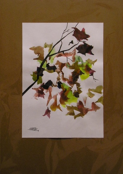 Dentro de mis temas habituales de la Naturaleza, las hojas han tomado protagonismo en más de una pintura. Vuelan y se mueven en el blanco del papel.