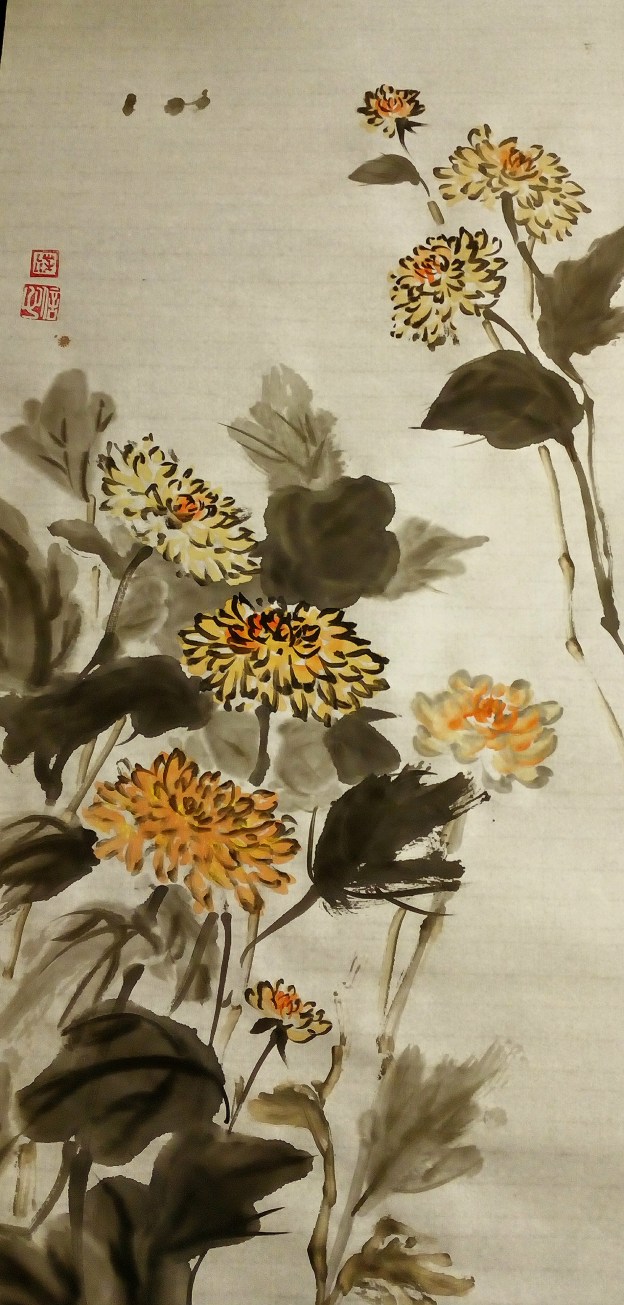 Recuerdo que al principio de mi aprendizaje de sumi-é, el kiku o crisantemo era de los 4 honorables caballeros por el que me sentía menos atraída.