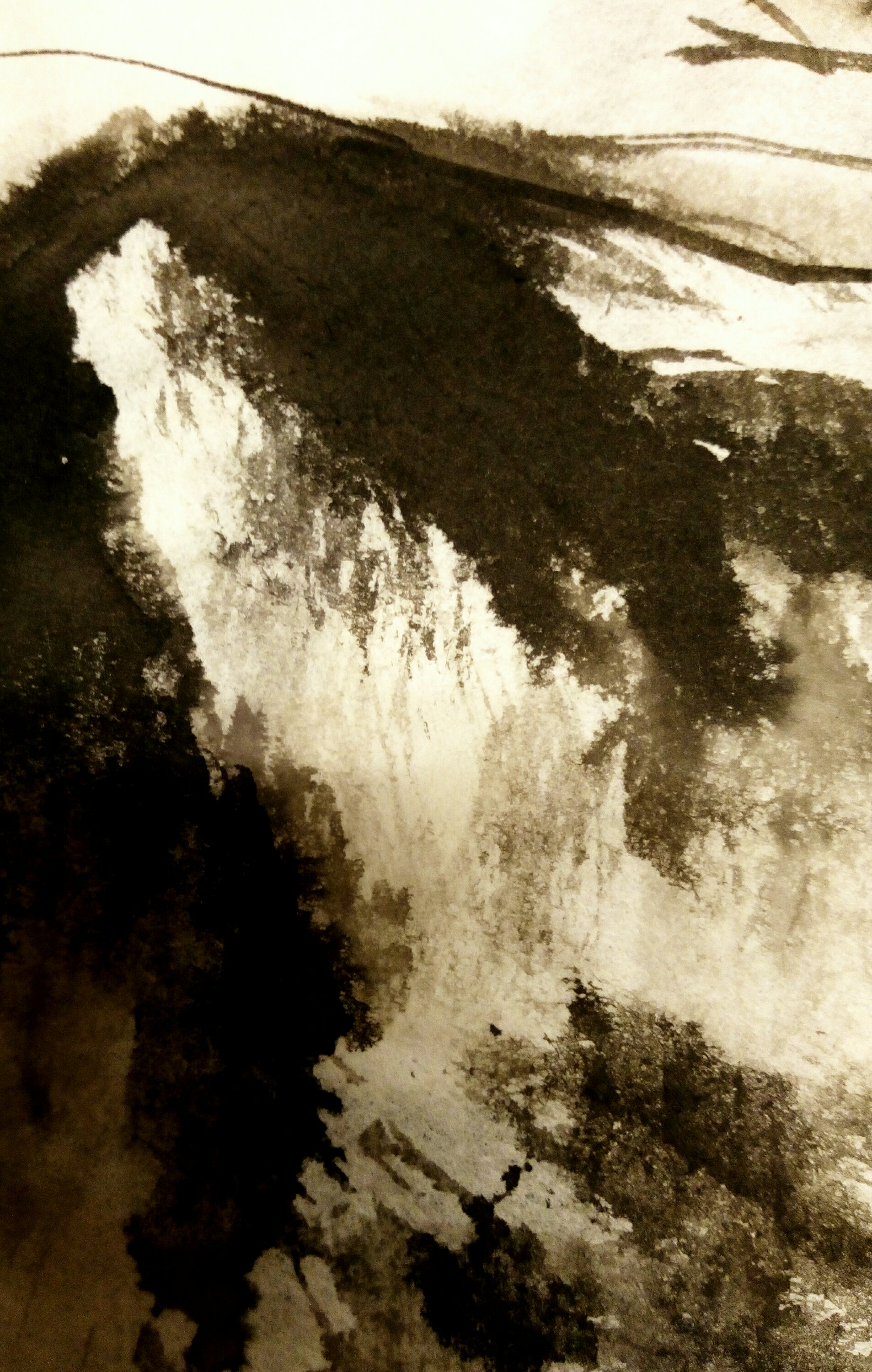 No hay límites entre el río y la montaña, entre lo negro pintado y lo blanco del vacío. ¿Lo veis?